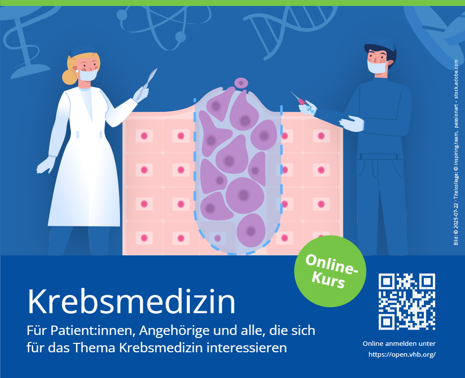 Praktische Tipps für den Alltag runden den Kurs ab, ebenso wie spannende Themen zu den Zukunftsperspektiven der Krebstherapie. Sie lernen, welche Maßnahmen heute schon die Heilungschancen verbessern, wie Forschung Fortschritte erzielt – und warum Krebs uns alle angeht.