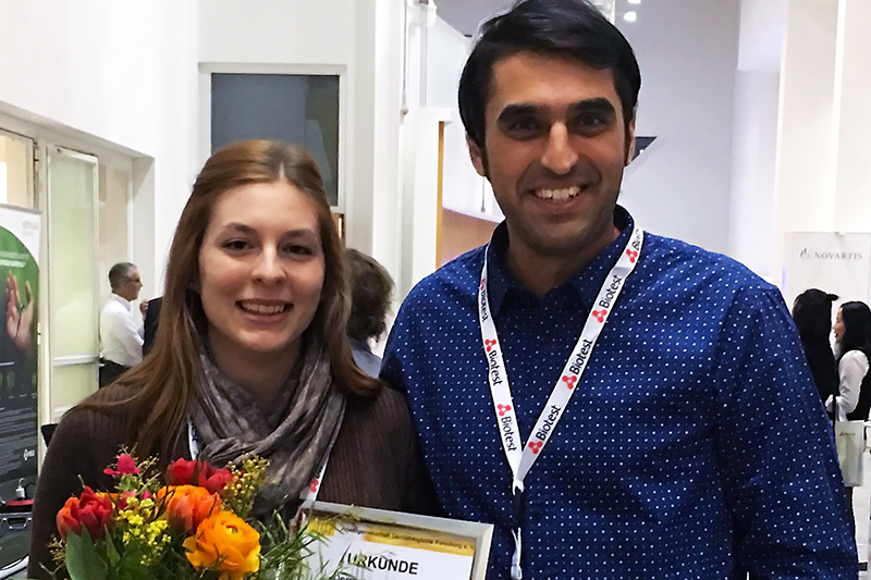 Bei der diesjährigen Tagung der Arbeitsgemeinschaft Dermatologische Forschung (ADF), die vom 7. bis 10. März 2018 in Zürich stattfand, wurde Bianca Simon mit dem Dermato-Onkologie-Nachwuchspreis 2018 ausgezeichnet. Die Erlanger PhD-Studentin promoviert aktuell an der Hautklinik (Direktor: Prof. Dr. med. univ. Gerold Schuler) des Universitätsklinikums Erlangen und arbeitet unter der Leitung von Dr. Ugur Uslu und PD Dr. Jan Dörrie an Mechanismen zur Verbesserung der Immuntherapie mit CAR-T-Zellen.
