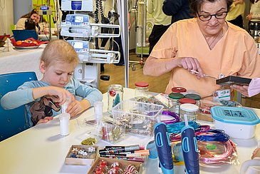 Punsch- und Waffelduft durchzog kürzlich die kinderonkologische Station 2C der Kinder- und Jugendklinik (Direktor: Prof. Dr. Joachim Wölfle) des Uniklinikums Erlangen. Anlass dafür war die Weihnachtsfeier, die die Elterninitiative krebskranker Kinder Erlangen e. V. zusammen mit dem Team der Kinderklinik in der Patientenküche organisiert hatte. Festliche Dekoration, stimmungsvolle Musik und verschiedene weihnachtliche Angebote sorgten für einen ausgelassenen Nachmittag.